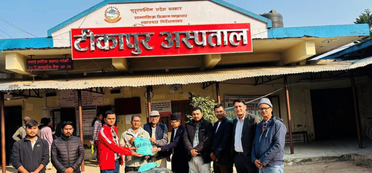 कैलाली, मंसिर १४ । स्थानीय समाजसेवी टेकराज बिनाडीले सुत्केरीलाई उपयोगी हुने न्याना झोला टीकापुर अस्पताललाई प्रदान गरेका छन्। उनले अस्पताल व्यवस्थापन समितिका अध्यक्ष झपटबहादुर सोडारी, पूर्वअध्यक्ष दीपक रावल र अस्पतालका मेडिकल सुपरिटेण्डेन्ट रेमकुमार राईलाई संयुक्त रूपमा बिहीबार दुई सय ५० वटा झोला हस्तान्तरण गरेका हुन्।