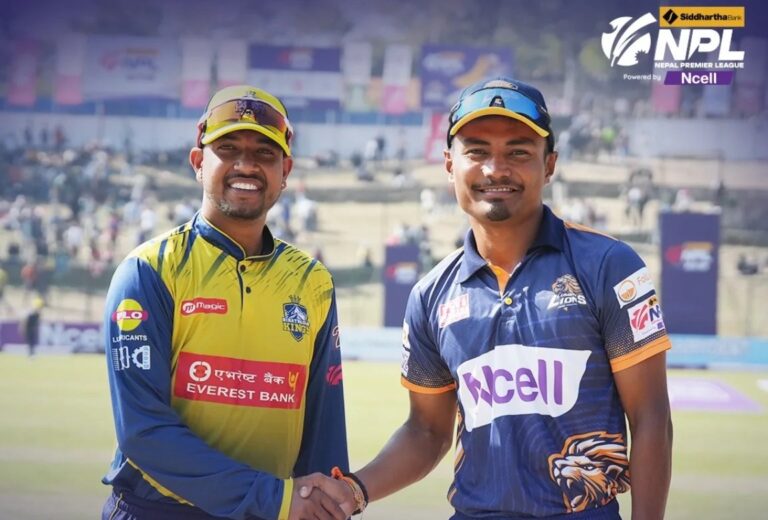 काठमाडौं । नेपाल प्रिमियर लिगमा लुम्बिनी लायन्सले हालसम्मकै उच्च स्कोर खडा गर्दै विराटनगर किंग्सलाई १९२ रनको विशाल लक्ष्य दिएको छ । त्रिवि मैदानमा टस हारेर पहिला ब्याटिङ गरेको लुम्बिनीले निर्धारित २० ओभरमा ७ विकट गुमाएर १९१ रन जोड्यो ।
