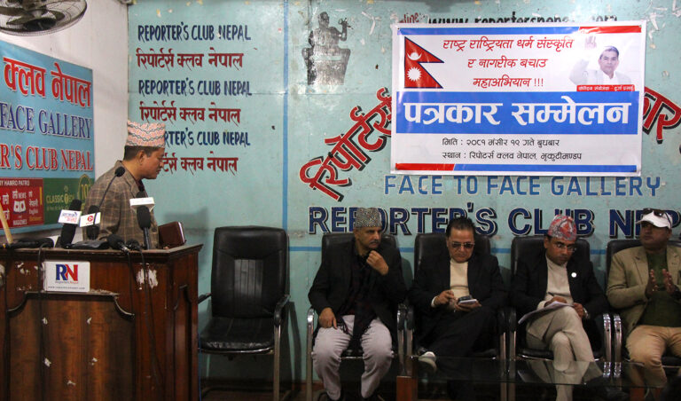 काठमाडौं, १९ मंसिर । राष्ट्र, राष्ट्रियता, धर्म संस्कृति र नागरिक बचाउ महाअभियानका उपत्यका प्रमुख विष्णुजंग बस्नेतले दुर्गा प्रसाईँलाई हिरासत मुक्त गरेर छानविन गरिनुपर्ने बताएका छन् । आज (बुधबार) रिपोर्टर्स क्लब नेपालमा पत्रकार सम्मेलन गर्दै उनले प्रसाईँलाई हिरासत मुक्त गरेर छानविन गरिनुपर्ने र केपी शर्मा ओलीले पनि प्रधानमन्त्रीबाट मार्ग प्रशस्त गरेर छानविनको दायरामा आउन तयार हुनुपर्ने बताएका हुन् ।