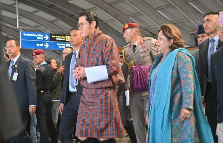 काठमाडौं । भुटानी नरेश जिग्मे खेसर नाम्गेल वाङचुक अनौपचारिक भ्रमणका सिलसिलामा आज बिहान काठमाडौं आइपुगेका छन् । उनलाई परराष्ट्रमन्त्री आरजु राणा देउवाले त्रिभुवन अन्तर्राष्ट्रिय विमानस्थलमा स्वागत गरेकी हुन् ।