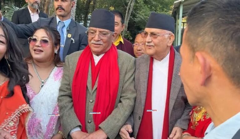 प्रधानमन्त्री ओली स्मिताको विवाह समारोहमा सहभागी, प्रचण्डसँग हार्दिकता छचल्कियो