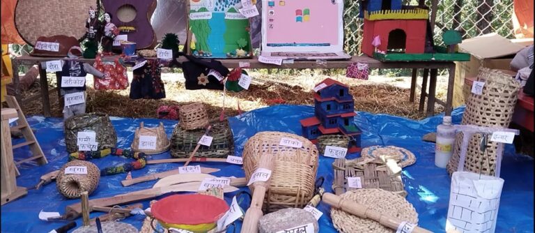 मेलामा बालबालिकाद्वारा निर्माण गरिएका शिक्षण सिकाइ क्रियाकलाप अन्तर्गतका सामग्री र परम्परागत सामग्री (ढिकी, जाँतो, ओखल, मुसल) लगायत सामग्री प्रदर्शनीमा राखिएका थिए ।