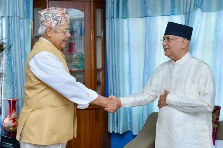 ‘प्रधानमन्त्रीबाट पनि राजीनामा गर्न भन्देउ, अध्यक्षबाट पनि राजीनामा गर्न भन्देउ । यस्तो भनेर पड्किनुभो । हस हजुर भनेँ । अब के भन्नु । हस म भन्दिउँला भनेँ । फोन राखेँ’ओलीले भने ।