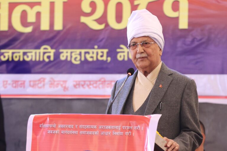 नेपाल लोकतान्त्रिक आदिवासी जनजाति महासङ्घ नेपालले आज आयोजना गरेको ‘राजनीतिमा प्रतिनिधित्व र पहुँच अभवृद्धिका लागि आदिवासी जनजाति महिला’ राष्ट्रिय महिला भेलालाई सम्बोधन गर्दै प्रधानमन्त्री ओलीले पछाडि परेका समुदायको जीवनस्तर माथि उकास्न संविधानले सुनिश्चित गरेको मौलिक हकको प्रभावकारी कार्यान्वयनमा जोड दिनुपर्ने बताए ।