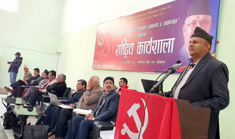 कार्यशालामा आज पहिलो दिन प्रमुख वक्ताका रूपमा महासचिव शंकर पोखरेलले पार्टीको बार्षिक कार्ययोजनाका बारेमा अभिमुखीकरण गर्दै पार्टीलाई बलियो राष्ट्रिय शक्तिका रूपमा स्थापित गर्ने आधारहरू र सम्पादित कामका बारेमा सहभागीहरूको ध्यानाकर्षण गराए ।