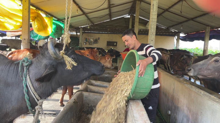 पशुपालनमा आफ्नी श्रीमती, दिदी र भिनाजुले सघाउने भन्दै आवश्यक परेको अवस्थामा घण्टे खेताला (काम गरेको घण्टाको आधारमा पारिश्रमिक लिने श्रमिक) समेत लगाउने गरेको बताए। “हामी घरको चार जना मिलेर पशुपालनमा जुट्ने गरेका छौँ”, उनले भने, “सधैँ सबै काम चार जनालेमात्रै गर्न नसक्ने अवस्थामा घण्टे खेताला पाइन्छ, उनीहरुलाई पनि काममा लगाउने गरेका छौँ ।” गाईभैँसीको दूध हातले दुहुने गरेको भन्दै १४ वटै गाईभैँसीको दूध दुहुन साढे एक घण्टा लाग्ने उनले सुनाए।