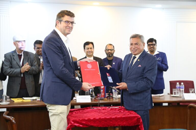 काठमाडौँ, १ पुस । नेपाल चेम्बर अफ कमर्श र संयुक्त राष्ट्रसङ्घीय विकास कार्यक्रम युएनडीपीबीच दिगो विकास एवं निजी क्षेत्रको क्षमता अभिवृद्धिका लागि सहकार्यको सम्झौतामा हस्ताक्षर भएको छ । जमलस्थित चेम्बर भवनमा आज आयोजित कार्यक्रममा चेम्बर अध्यक्ष कमलेशकुमार अग्रवाल र युएनडीपीका कार्यबहाक आवासीय प्रतिनिधि जुलिएन चेभिलार्डले हस्ताक्षर गरे ।