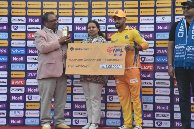 काठमाडौं । एनपीएल उपविजेता टोली सुदूरपश्चिम रोयल्सका सैफ जैब ‘प्लेयर अफ द टुर्नामेन्ट’ घोषित भएका छन् ।