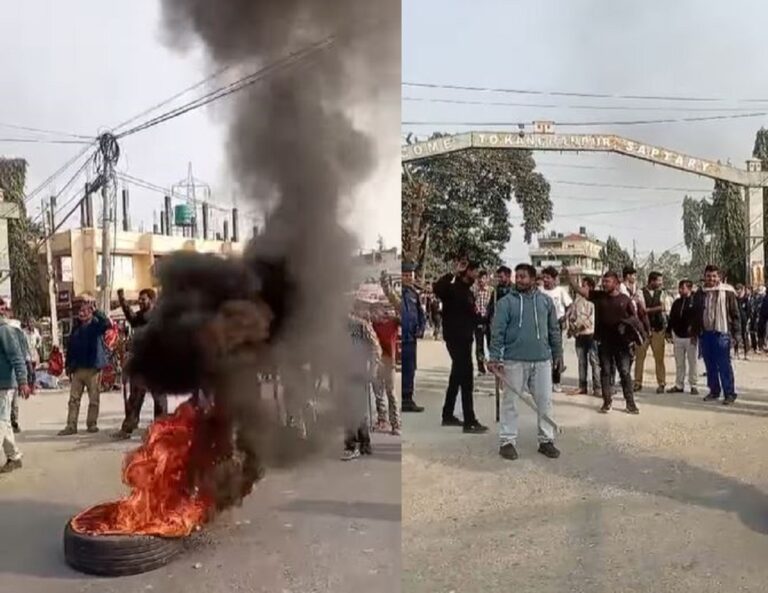 काठमाडौं, ८ पुस । सत्तारुढ दल जनमत पार्टीले सप्तरीमा टायर बालेर प्रर्दशन गरेको छ । आज (सोमबार) जनमत पार्टीले सप्तरीमा प्रर्दशन गर्दै एक घण्टा सडक बन्दसमेत गराएको थियो । नेपाल प्रिमियर लिग (एनपिएल) को फाइनल खेलका क्रममा जनकपुर बोल्टसका समर्थकहरूमाथि केही अराजक व्यक्ति र समूहले अपमानजनक तथा विभेदकारी व्यवहार गरेको भन्दै जनमत पार्टीले आपत्ति जनाउँदै आएको छ । सोही घटनाको विरोधमा जनमतका समर्थकहरुले आज सप्तरीको सडकमा टायर बालेर लाठीसहित प्रदर्शन गरेका हुन् ।
