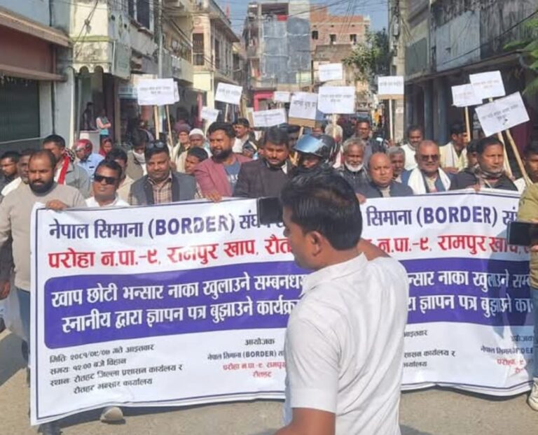 काठमाडौं, ९ पुस । रौतहटको ईशनाथ नगरपालिका र परोहा नगरपालिकाका स्थानीयहरुले खाप छोटी भन्सार नाका खुलाउन माग गर्दै प्रदर्शन र धर्ना सुरु गरेका छन् । स्थानीयहरुले संघर्ष समिति नै बनाएर संघर्ष थालेका हुन् ।