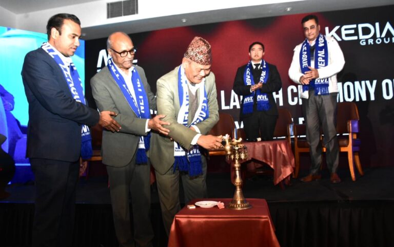 युवा तथा खेलकुद मन्त्री तेजुलाल चौधरीले लोगो अनावरण गरेका हुन् । केडिया ग्रुपका अध्यक्ष विमल केडिया र मन्त्री चौधरीले संयुक्त रुपमा ‘उचाईको नयाँ उडान’ नामक स्लोगान सार्वजनिक गरेका हुन् । एनभीएल सन् २०१५ मा सुरु हुने जनाईएको छ ।तस्विर : मुकुन्द कालिकोटे/रिपोर्टर्स नेपाल डटकम