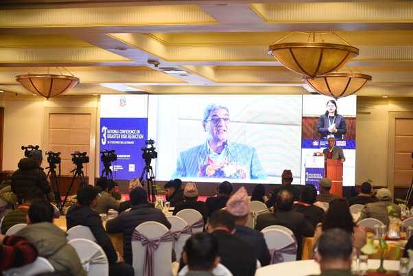 राष्ट्रिय विपद् जोखिम न्यूनीकरण तथा व्यवस्थापन प्राधिकरण र प्रकोप पूर्वतयारी सञ्जाल, नेपाल (डिपिनेट) द्वारा आज यहाँ आयोजित तेस्रो विपद् जोखिम न्यूनीकरण सम्मेलनको उद्घाटन गर्दै मन्त्री लेखकले जलवायु परिवर्तनले निम्ताउने प्राकृतिक समस्याहरूको जोखिम थप बढाउँदै लगेकाले विपद् जोखिम न्यूनीकरण हाम्रो विकल्प नभई आवश्यकता हो भने ।
