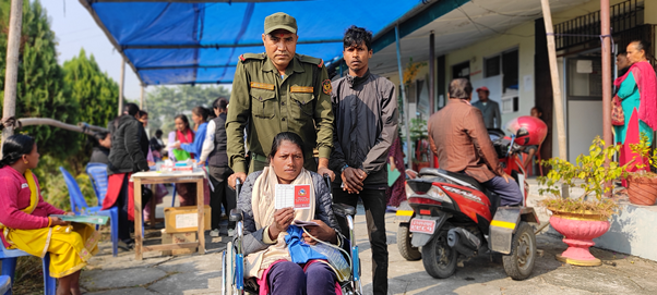 स्वास्थ्य शिविर भेटिएका मेचीनगर–१५ का रोहित गुरुङलाई पनि चिकित्सक टोलीले स्वास्थ्य परीक्षण गरेपछि रातो कार्ड दिए । “ह्विलचेयरमा हिँड्छु, भत्ता पाउने रातो कार्ड पाउँदा खुसी लागेको छ,” उनले हर्षित हुँदै भने, “पहिले अर्को कार्ड थियो । अहिले डाक्टरहरूले जाँचेपछि रातो कार्ड दिनुभयो ।”
