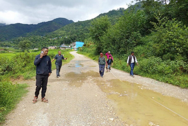 बागलुङ, पुस १७ । बरेङ गाउँपालिका-२ हुग्दीशिरबाट गुल्मीको शान्तिपुर जोड्ने सडक ‘ट्रयाक’ खुलेको १८ वर्षपछि कालोपत्र गर्न थालिएको छ।