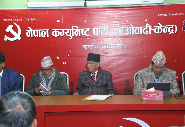 काठमाडौँ, १८ पुस । नेपाल कम्युनिष्ट पार्टी (माओवादी केन्द्र) ले आसन्न केन्द्रीय समिति बैठकको ‘एजेण्डा’ माथि छलफल गरेको छ । पार्टी मुख्यालय पेरिसडाँडामा आज बसेको स्थायी समिति बैठकले केन्द्रीय समिति बैठकमा प्रस्तुत हुने राजनीतिक प्रतिवेदनमाथि छलफल भएको प्रवक्ता अग्निप्रसाद सापकोटाले जानकारी दिए ।