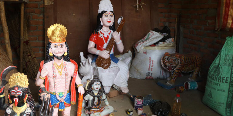 तुलसीपुर (दाङ), २६ पुस । तुलसीपुर–१ छोटेका चित्रप्रसाद सुवेदी नौ वर्ष मलेसिया बसेर आए । मलेसियामा पनि राम्रो कमाई नभएपछि उनले गाउँमै केही गर्ने प्रण गरे र सुरू गरे विभिन्न मूर्ति बनाउन । न कुनै तालिम, न त कुनै प्रशिक्षण, चित्र हेरेर उनले मूर्ति बनाउन सुरू गरे । अहिले उनी विभिन्न मन्दिरमा मूर्ति बनाउँदै हिँडिरहेका छन् ।