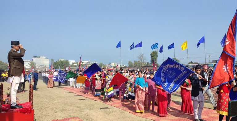 शुक्रबार कञ्चनपुरको महेन्द्रनगरस्थित खुलामञ्चमा निजी विद्यालयरूको संगठन एन प्याब्सन कञ्चनपुरले आयोजना गरेको ‘खेल महोत्सव’को उद्घाटन समारोहमा अनुपम एजुकेसलन एकेडेमीका विद्यार्थीले मार्चपासक्रममा दिएको सलामी ग्रहण गरेका हुन्।