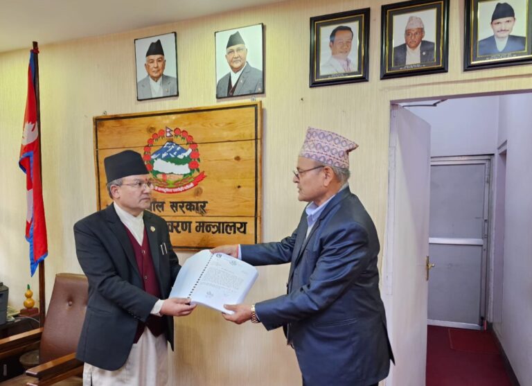 काठमाडौँ, २८ पुस । वन तथा वातावरणमन्त्री ऐनबहादुर शाही ठकुरीसमक्ष शुक्लाफाँटा राष्ट्रिय निकुञ्ज विस्थापितहरुको समस्या समाधान आयोग–२०८१ ले प्रतिवेदन बुझाएको छ । समितिका अध्यक्ष जयानन्द पनेरुले आज मन्त्रालयमा उक्त प्रतिवेदन मन्त्री शाहीलाई बुझाएका हुन् ।