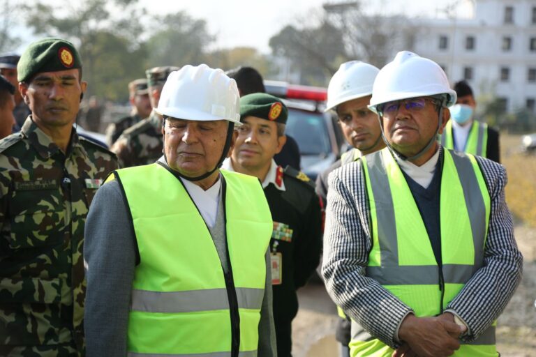काठमाडौं, २९ पुष । राष्ट्रपति रामचन्द्र पौडेलले सिंहदरबारको पुतली बगैंचामा निर्माण भैरहेको संसद भवनको अवलोकन गरेका छन् । राष्ट्रपति पौडेल एकाएक निर्माणाधिन संसद् भवनको अवलोकन गर्न पुगेका हुन्। उनलाई सभामुख देवराज घिमिरेले निर्माण भैरहेको उक्त भवनको अवलोकन गराएका हुन् । राष्ट्रपति पौडेल सभामुख भैसकेका व्यक्तित्व हुन् ।
