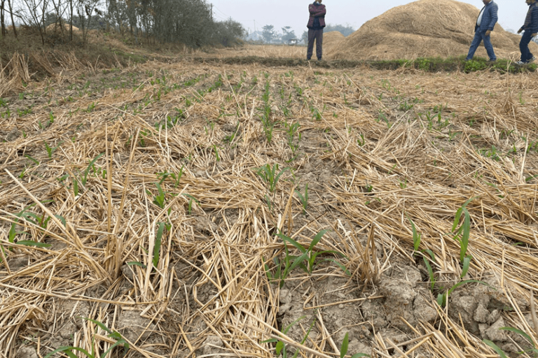 बनियानी (झापा), ६ माघ । नवीनतम् प्रविधिबाट मकैखेती हुने भएपछि यहाँका किसान उत्साहित भएका छन् । खनजोत नै नगरी धान रोपेको खेतमा सोझै मकै बाली लगाउन सकिने भएपछि किसान उत्पासाहित भएका हुन् । झापा बाह्रदशी गाउँपालिका–६ किसान माता सोरेनले भने, “मकै रोप्ने बेलामा उम्रिन्छ जस्तो लाग्दैन थियो, अहिले उम्रिएको बिरुवा हेर्दा खेती राम्रै हुन्छ जस्तो छ ।”