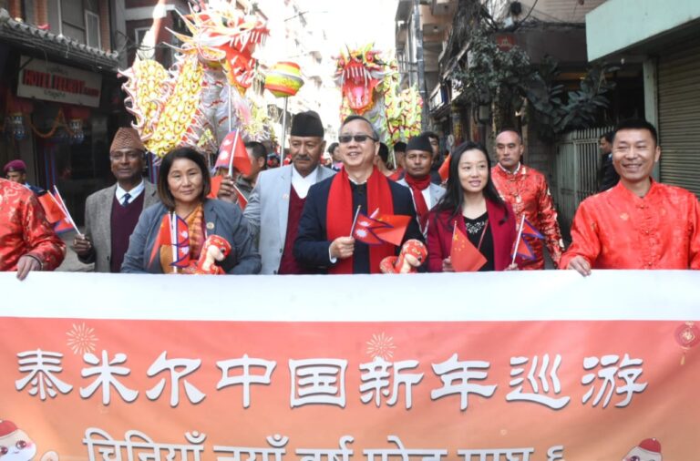 चीनका राजदूत छन सोङले चीन–नेपाल कूटनीतिक सम्बन्धको ७०औँ वार्षिकोत्सव र चिनियाँ नयाँ वर्ष मनाउने क्रममा आयोजित परेडले विशेष महत्व रहेको बताउँदै यसले दुई देशबीचको घनिष्ठ र निरन्तर बढ्दै गइरहेको सम्बन्धलाई अगाडि बढाउन उत्कृष्ट अवसर बन्ने विश्वास व्यक्त गरे । सो अवसरमा चीन र नेपालका विविध संस्कृति झल्कने प्रस्तुति पनि देखाइएको थियो । रासस