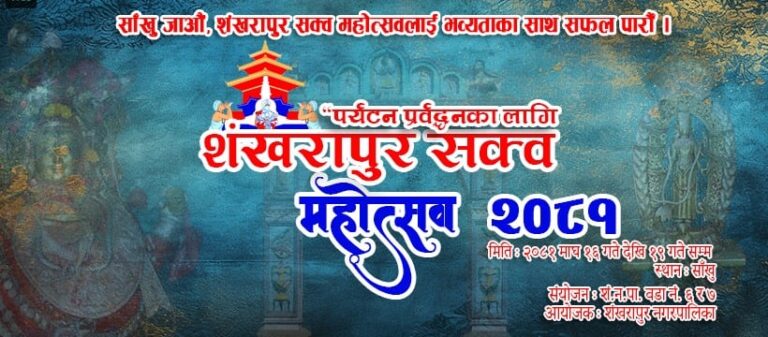 काठमाडौं । शंखरापुर नगरपालिकाको आयोजना तथा वडा नं ६ र ७ को संयोजनमा ‘शंखरापुर सक्व महोत्सव २०८१’ आयोजना हुने भएको छ । सांस्कृतिक रूपले लावण्यदेशका नामले सुपरिचित शंखरापुर नगरका प्रवक्ता तथा वडा नं ६ का वडा अध्यक्ष राधाकृष्ण श्रेष्ठका अनुसार आउँदो माघ १६ गतेदेखि १९ गतेसम्म प्राचीन सम्पदा बस्तीमा शंखरापुर सक्व महोत्सव २०८१ हुनेछ ।