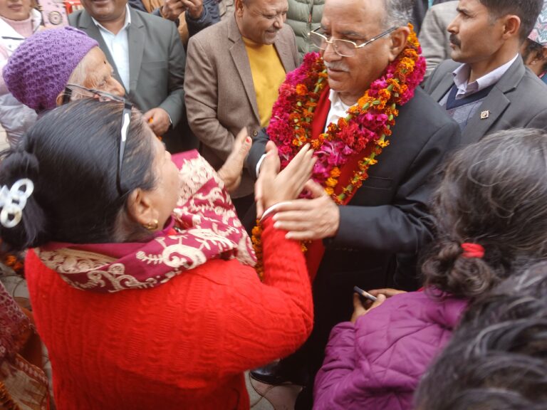 काठमाडौं, १० माघ । नेकपा (माओवादी केन्द्र) का अध्यक्ष पुष्पकमल दाहाल ‘प्रचण्ड’ बाँकेको खजुरा–३ धवलागिरी गाउँमा पुगेर सहिद परिवारसँग भेटघाट गरेका छन् । उनले त्यस क्षेत्रका सहिद परिवारसँग भेट गरेका हुन् । प्रचण्डले सहिद परिवारसँगै बसेर खानासमेत खाएका थिए ।