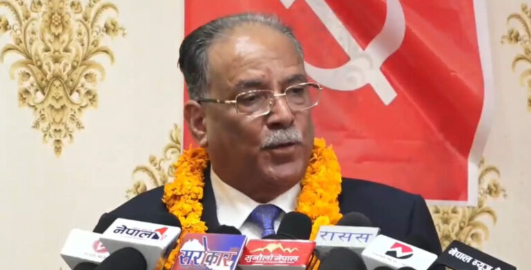 काठमाडौं, ११ माघ । नेकपा (माओवादी केन्द्र) का अध्यक्ष एवं पूर्व प्रधानमन्त्री पुष्पकमल दाहाल ‘प्रचण्ड’ ले कांग्रेस–एमालेका नेताहरुले राष्ट्रपति रामचन्द्र पौडेललाई महाअभियोगको धम्की दिएपछि वर्तमान सरकार बनेको खुलासा गरेका छन् । आज (शुक्रबार) दाङको तुलसीपुरमा आयोजित पार्टीको तेस्रो नगर अधिवेशन उद्घाटन तथा खबरदारी सभालाई सम्बोधन गर्दै उनले राष्ट्रपति पौडेले संवैधानिक व्यवस्था बमोजित नेपालको संविधानको धारा ७६ (३) मा जान चाहँदा पनि कांग्रेस–एमालेका नेताहरुको दवाबमा परेर काम गर्नुपरेको बताएका हुन् ।