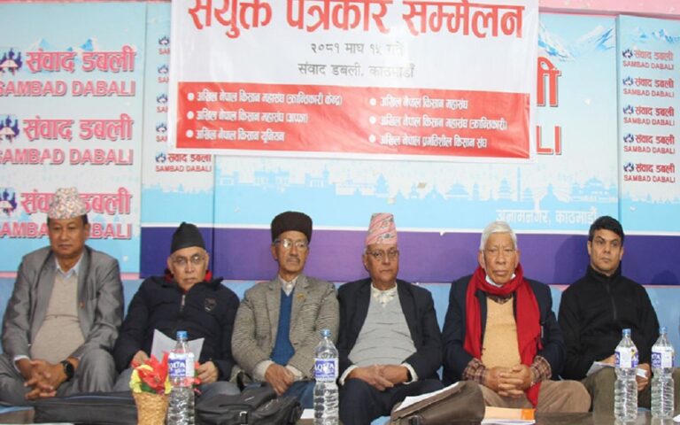 काठमाडौं, १५ माघ । विभिन्न छ किसान संगठनहरुले सरकारले गलत नियतले अध्यादेश ल्याएको निष्कर्ष निकालेका छन् । आज (मंगलबार) काठमाडौंमा संयुक्त पत्रकार सम्मेलन गर्दै उनीहरुले हजारौं विगा हदबन्दीको जग्गा कब्जा गर्न सरकारले भूमिसम्बन्धी अध्यादेश ल्याएको निष्कर्ष सार्वजनिक गरेका हुन् । प्रधानमन्त्री केपी शर्मा ओलीले अघिल्लो कार्यकालमा गर्न नसकेको गिरीबन्धु टि स्टेटजस्तै हजारौं विगा हदबन्दी छुटमा रहेका जग्गाहरु अध्यादेश आएसँगै जोखिममा परेको उनीहरुले बताए ।
