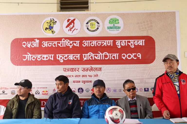 काठमाडौं, १७ माघ । अन्तर्राष्ट्रिय आमन्त्रण बुढासुब्बा गोल्डकप फुटबल प्रतियोगिताको २५औँ संस्करणको तयारी पूरा भएको छ । आयोजक धरान फुटबल क्लबका अध्यक्ष प्रताप तामाङले यही माघ १९ गतेदेखि २६ गतेसम्म सञ्चालन हुने प्रतियोगिताको तयारी पूरा भएको जानकारी दिए ।