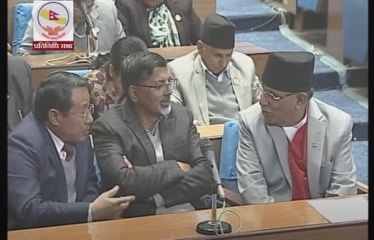 काठमाडौं, १८ माघ । प्रतिनिधिसभाको बैठकमा प्रमुख प्रतिपक्षी दल नेकपा (माओवादी केन्द्र) का शीर्ष नेताहरुबीच कानेखुशी चलेको छ । अध्यक्ष पुष्पकमल दाहाल, उपमहासचिवद्धय जनार्दन शर्मा र वर्षमान पुनबीच कानेखुशी चलेको हो । सभामुख देवराज घिमिरेसँग रास्वपाका सांसदहरुको सवालजवाफ चलिरहेको सन्दर्भमा माओवादी केन्द्रका तीन नेताबीच कानेखुशी चलेको हो ।