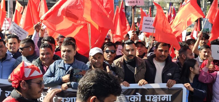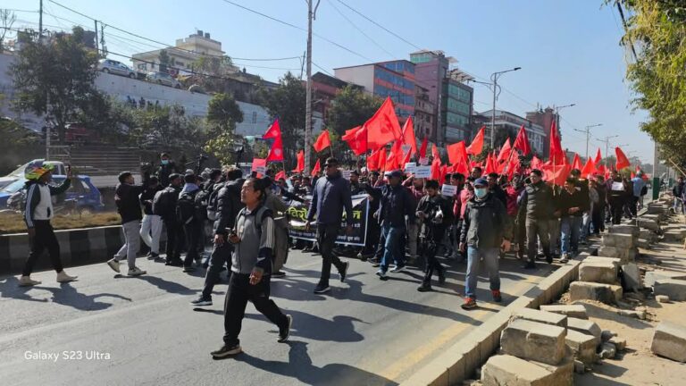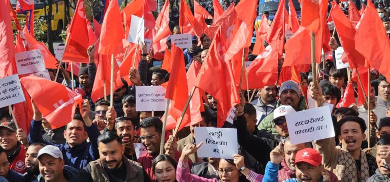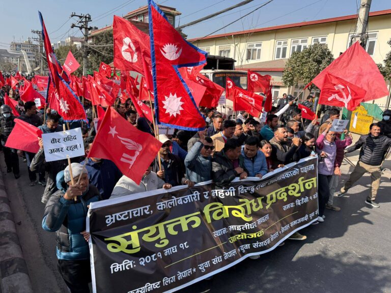 काठमाडौं, १८ माघ । समाजवादी मोर्चामा आवद्ध राजनीतिक दलका युवा संगठन समाजवादी युवा मोर्चाले भ्रष्टाचार, कालाबजारी, महँगीको विरुद्धमा र जनजीविकाका पक्षमा संयुक्त प्रदर्शन गरेको छ । नेकपा (माओवादी केन्द्र) को युवा संगठन योङ्ग कम्युनिष्ट लिग (वाईसीएल) नेपाल, नेकपा (एकीकृत समाजवादी) को युवा संगठन युवा संघ नेपाल, विप्लव नेतृत्वको नेकपाको युवा संगठन युवा संगठन नेपाल र महिन्द्र राय यादव नेतृत्वको नेपाल समाजवादी पार्टीको युवा संठन नेपाल समाजवादी युवा संघले आज संयुक्त प्रदर्शन गरेको हो ।