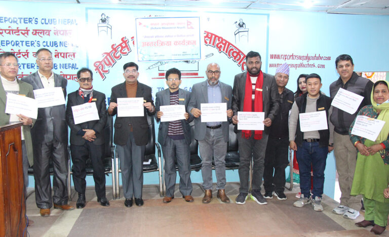 काठमाडौं, १९ माघ । सुधार आन्दोलन नेपालले ‘नेपालको संविधान संशोधन र निर्वाचन प्रणाली’ विषयक अन्तरक्रिया गरेको छ । आज (शनिबार) रिपोर्टर्स क्बल नेपालमा सुधार आन्दोलन नेपालले विषयमा विभिन्न दलका नेताहरुसँग अन्तरक्रिया गरेका हो । वक्ता डा.मोजराज बगालेले नेपालको संविधानले भ्रष्टाचारीहरुलाई खुलेआम हिँड्न दिने व्यवस्था गरेको बताए । जनताले तिरेको करको समेत सदुपयोग हुन नसकिरहेको उनको दाबी छ । देशको संविधान संशोधन नगरी सुख नै नरहेको उनको भनाइ छ । तर, मुठ्ठीभरका व्यक्तिहरुको पक्षमा संविधान संशोधन गरियो भने युवाहरुले विद्रोह गर्ने उनको चेतावनी छ । लोकतन्त्रले भ्रष्टाचारी र बदमासहरुलाई स्वीकार गर्न नसक्ने उनले बताए । उनले संविधान संशोधन आम जनताको पक्षमा होस् भन्ने आफूहरुको मान्यता रहेको बताए ।