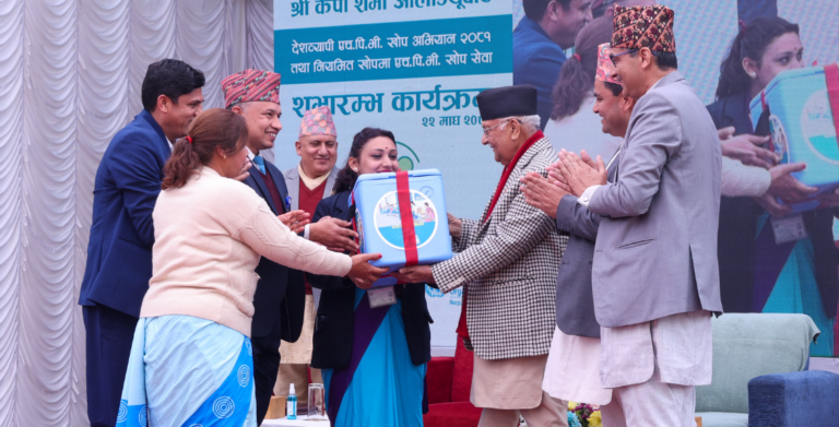 बालुवाटरस्थित शिवपुरी उच्च माध्यामिक विद्यालयमा आज आयोजित एक कार्यक्रममा काठमाडौँ महानगरपालिका–३ स्वस्थ्यकर्मीलाई खोपसामग्री प्रदान गरेर अभियानको शुभारम्भ गरेका हुन् ।