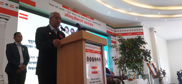 पार्टी एकताबद्ध भएमा बहुमत हासिल गर्न सहज हुने बताउँदै उनले राजनीतिक अस्थिरतालाई दृष्टिगत गर्दै नेपाली कांग्रेस र नेपाल कम्युनिष्ट पार्टी (एमाले) बीच सहकार्य भएको स्पष्ट गरे । नेकपा एमाले मुख्य प्रतिस्पर्धी भए पनि अविश्वास गर्नुपर्ने अवस्था नरहेको सभापति देउवाको कथन थियो ।