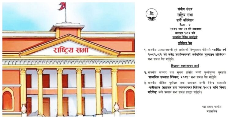 साथै, सञ्चार तथा सूचना प्रविधि मन्त्री पृथ्वीसुब्बा गुरुङले “सामाजिक सञ्जाल विधेयक, २०८१” सभा समक्ष पेस गर्ने सम्भावित कार्यसूचीमा उल्लेख गरिएको छ ।