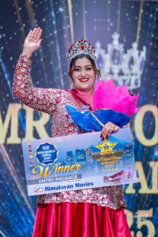 शनिवार अपरान्ह राजधानीको ज्यापु प्रज्ञा एकेडेमीमा सम्पन्न सो कार्यक्रममा ताजसँगै “नेपाल फेसन एण्ड इन्टरटेन्मेन्ट अर्वाड २०२५ टोकीयो जापान” को लागी इन्ट्री प्याकेज समेत प्राप्त गरेकी छिन्। प्रमुख निर्णायक रमेश उप्रेतीले सोधेको प्रश्नमा उत्कृष्ट उत्तर दिदै उनले शिर्ष उपाधी जित्न सफल भएकी थिइन् । हिमालयन मुभिज प्रोडक्सन हाउस द्वारा आयोजित सो कार्यक्रममा फस्ट रनर अप सर्वण जोशी एवं सेकेन्ड रनरअप रेखा भट्टराइ हुन सफल भएका थिए।