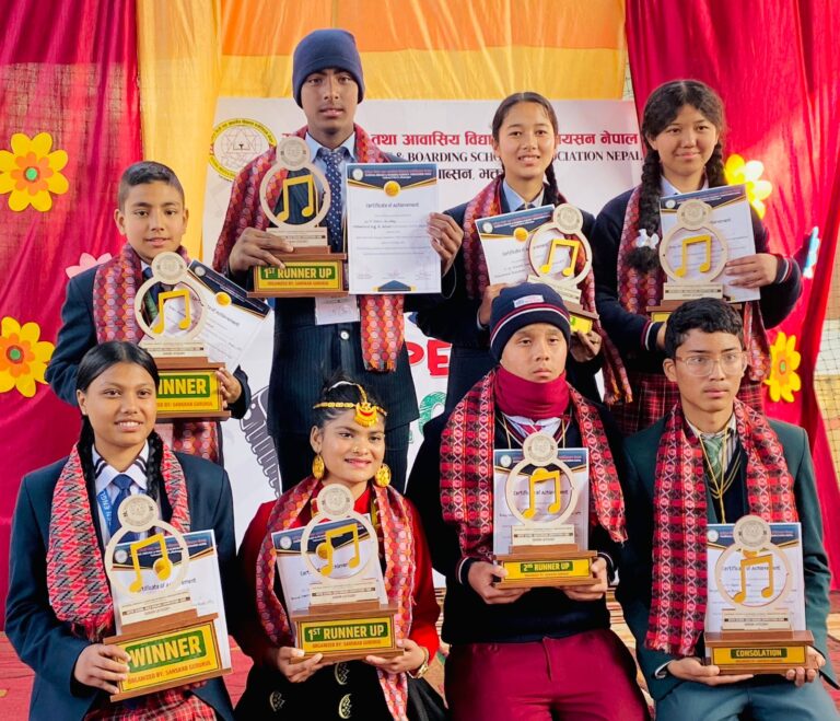 भक्तपुर । नेसनल प्याव्सन भक्तपुरको कार्यक्रमअन्तर्गत संस्कार गुरूकूलको आयोजनामा सम्पन्न एकल गायन प्रतियोगिताको आधारभूत तहमा ईडेन गार्डेन स्कुलका श्रीजय महत प्रथम र माध्यमिक तहमा पनि ईडेन गार्डेनकी सुप्रिया प्रधान प्रथम भएका छन् । नेसनल प्याव्सन भक्तपुरमा आवद्ध सदस्य विद्यालयहरुबीचमा प्रतिस्पर्धा भएको उक्त एकल गायन प्रतियोगिताको आधारभूत तहको द्धितीय स्थान मदरल्याण्ड स्कुलको सविन गुइदे, तृतीय स्थान ऋतम्भरा स्कुलकी साकिरा लामा र सान्त्वना स्थान रुबी भ्यालीकी एन्जल मोक्तान हुन सफल भएका छन् ।