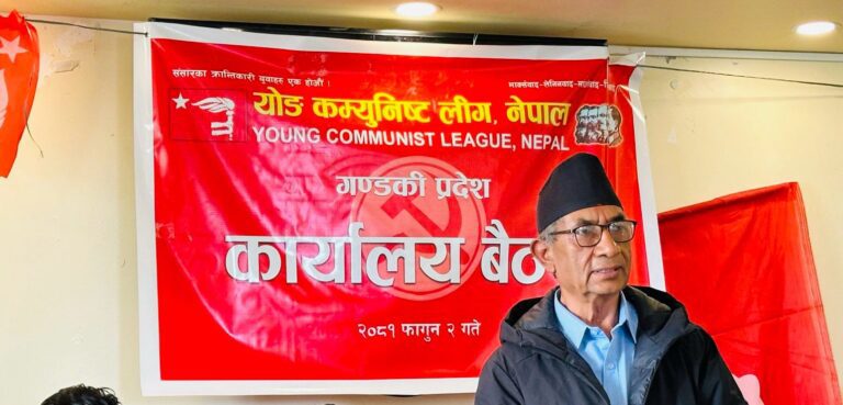 काठमाडौ, २ माघ । नेकपा (माओवादी केन्द्र) का सचिव तथा गण्डकी प्रदेश इन्चार्ज दीननाथ शर्माले वर्तमान सरकार जनघाती, भ्रष्टाचारी र कमिसनखोरीको संरक्षणमा लागेको बताएका छन् । आज (बिहीबार) पार्टीको सहायक संगठन योङ्ग कम्यनिष्ट लिग (वाईसीएल) नेपालको गण्डकी प्रदेश बैठकलाई सम्बोधन गर्दै उनले सरकारको यस्ता प्रकारका विसंगतिको विरोध गर्न आग्रह गरेका हुन् । जनताको अपेक्षा माओवादी र नेतृत्वसँग मात्र रहेको उनले बताए । उनले जनअपेक्षाअनुसारको चुस्त प्रभावकारी काम गर्नसमेत नेता तथा कार्यकर्ताहरुलाई निर्देशन दिए ।
