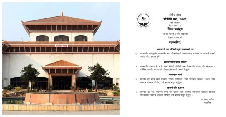 गृह मन्त्री रमेश लेखकले ‘नेपाल नागरिकता (दोस्रो संसोधन) विधेयक, २०८१ माथि सामान्य छलफल गरियोस भन्ने प्रस्ताव प्रस्तुत गर्नेछन भने बन तथा बातावरण मन्त्री ऐनबहादुर शाही ठकुरीले ‘मोन्ट्रियल प्रोटोकल किगाली संसोधनमाथि सामान्य छलफल गरियोस्’ भन्ने प्रस्ताव प्रस्तुत गर्ने महासचिव पदमप्रसाद पाण्डेले सार्बजनिक गरेको सम्भावित कार्यसूचीमा उल्लेख गरिएको छ ।