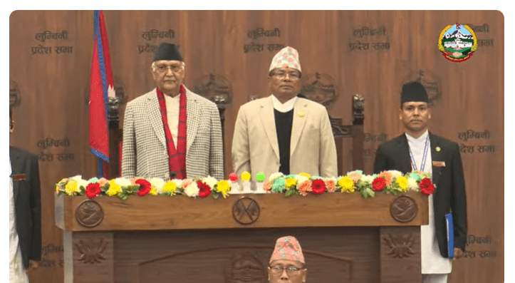 दाङको देउखुरीमा जारी प्रदेशसभाको बैठकमा ओलीले सम्बोधन गरिरहेका हुन् । लुम्बिनी प्रदेशका सभामुख तुलाराम घर्ती मगरले मुख्यमन्त्री चेतनारायण आचार्यमार्फत प्रधानमन्त्री ओलीलाई बिशेष सम्वोधनका लागि निमन्त्रणा गरेका थिए ।