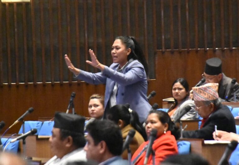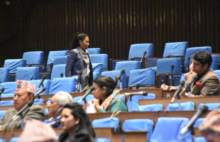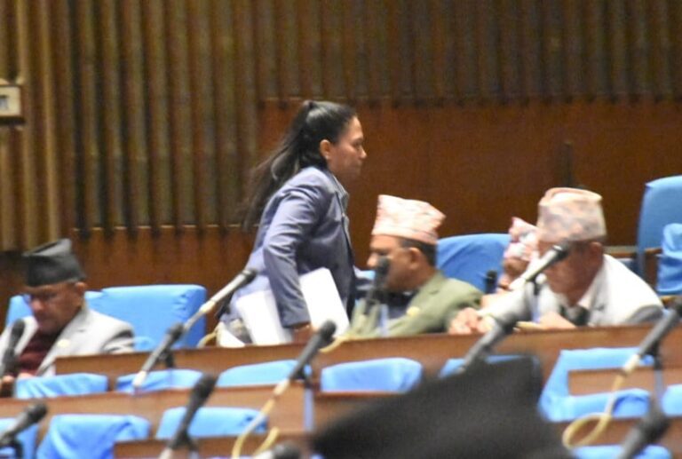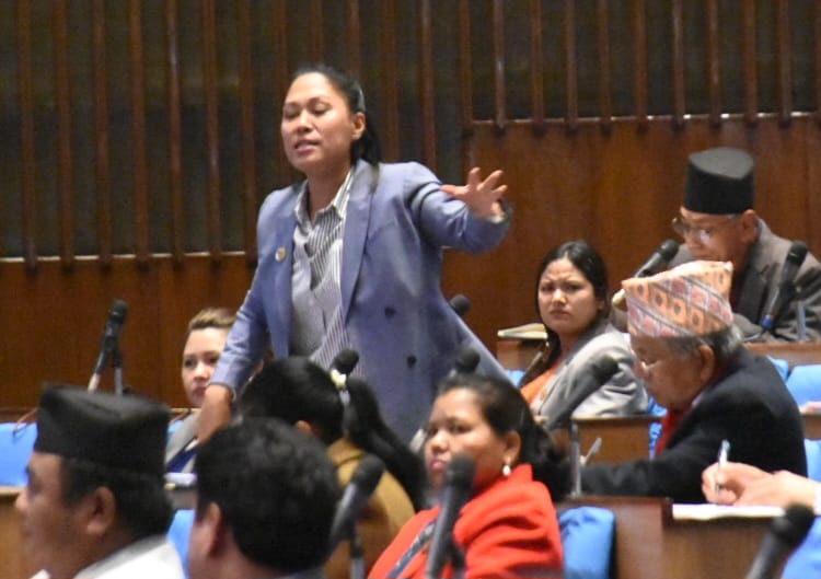 सभामुखले शून्य समय घोषणा गरेलगत्तै उठेर सुमना एक्लैले विरोध जनाईन् । उनले बोल्न समय माग गरेपनि सभामुखले बोल्ने अनुमति नदिइएको जनाउँदै आसन ग्रहण गर्न अनुरोध गरे । केहीबेर चर्काचर्की परेपछि सुमना बैठक छाडेर बाहिरिएकी थिईन् । तस्बिर: मुकुन्द कालिकोटे/ रिपोर्टर्स नेपाल
