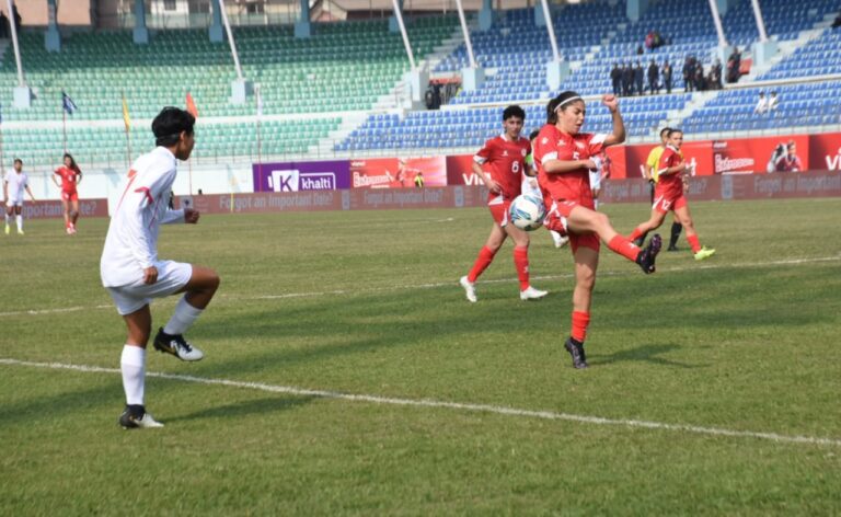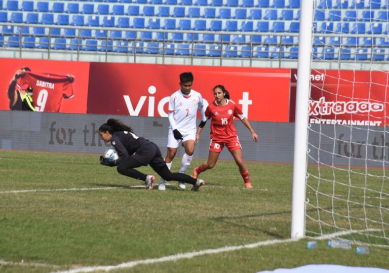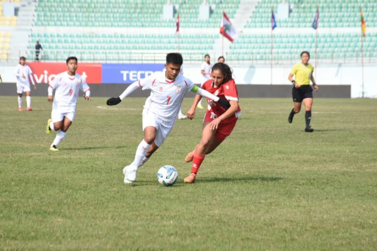 काठमाडौं । अन्तर्राष्ट्रिय महिला फुटबल प्रतियोगिता (ईन्टरनेशनल वुमन्स च्याम्पियनसिप) मा म्यानमारले विजयी सुरुआत गरेको छ । अखिल नेपाल फुटबल संघ (एन्फा) को आयोजनामा आजबाट भएको प्रतियोगीतामा म्यानमारले लेबनानलाई ३-१ ले हरायो ।