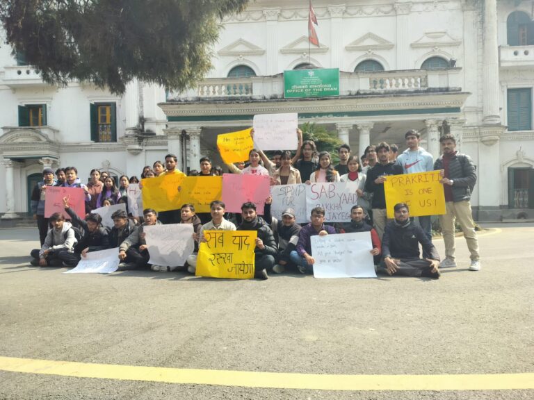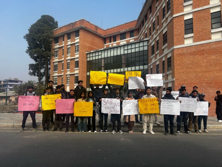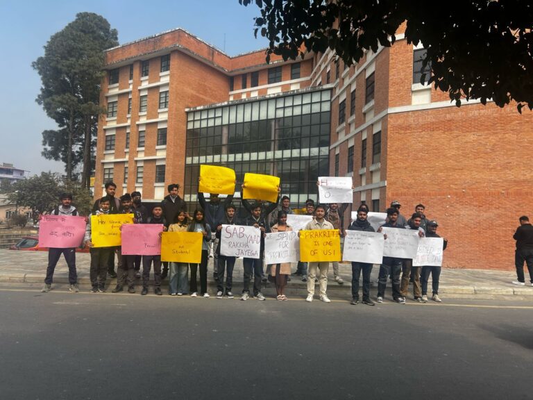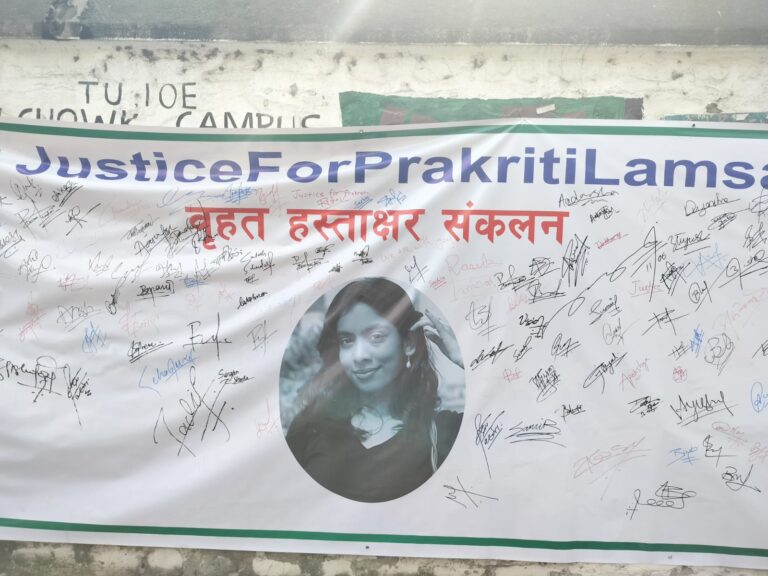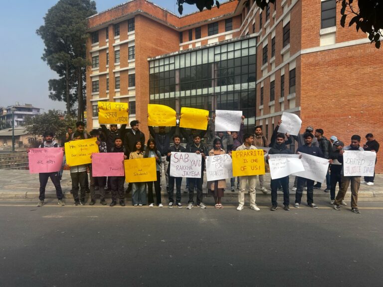 काठमाडौं, ७ फागुन । नेपाली कांग्रेसनिकट विद्यार्थी संगठन नेपाल विद्यार्थी संघ (नेविसंघ) पुल्चोक क्याम्पस इकाइले भारतको ओडिसास्थित कलिङ्गा इन्स्टिच्युट अफ टेक्नोलोजी (केआईआईटी) मा मृत फेला परेकी नेपाली छात्रा प्रकृति लम्सालको न्यायको लागि प्रदर्शन गरेको छ ।