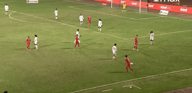 खेलको ६ मिनेटमा नै म्यानमारले अग्रता लिएको हो । म्याट नोए खिनले करिब २५ यार्डबाट फ्रिकिकमा सिधै गोल गरेकी हुन् । नेपाली गोलकिपर अन्जन राना मगरले बललाई रोक्न सकिनन् ।