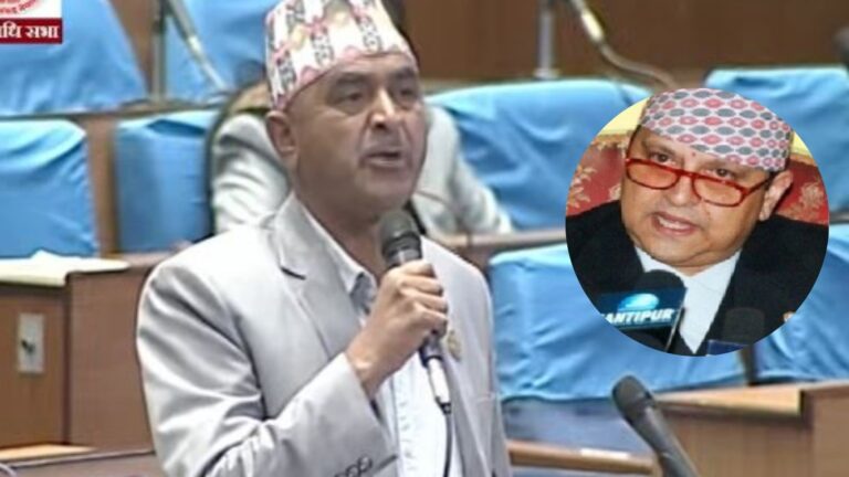 ‘पूर्व राजा ज्ञानेन्द्रबाट शहीदको अपमान भयो प्रजातन्त्रप्रति विषवमन गर्ने कोशिस गरे । जननेता मदन भण्डारीले ०४६ सालको परिवर्तनलगत्तै ०४८ सालको निर्वाचनको ताका तत्कालीन राजाले संविधानको केही प्रावधान उल्लंघन गर्ने प्रयास गरेपछि जननेता मदन भण्डारीले भन्नुभएको थियो । महाराज हात नलम्काईबक्सियोस् । आँखा नझिम्काईबक्सियोस् । संविधानले । यो व्यवस्थाले दिएको आसनमा बस्नुहोस् । हामीलाई कुनै आपत्ति छैन् । तर, संविधान उल्लंघनको कोशिस भयो । भने राजतन्त्रको समाप्तीलाई कसैले रोक्न सक्ने छैन्’ उनले भने ।