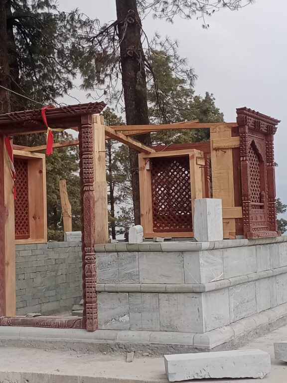 “परापूर्वककालदेखि थानलाई पूजा गरिन्थ्यो, त्यही थानमा सानो सिमन्टको मन्दिर निर्माण भएको थियो, उक्त मन्दिर जीर्ण भएपछि अहिले पर्यटन मन्त्रालयको पहलमा पुनर्निर्माण थालिएको हो”, सापकोटाले भने, “दिव्य शिलालाई घेरेर ढुङ्गा र काठबाट कलात्मक रुपमा मन्दिर पुनर्निर्माण भइरहेको छ ।”