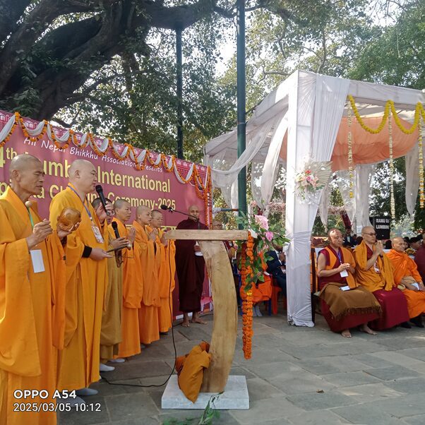लुम्बिनी, २१ फागुन । विश्व सम्पदामा सूचीकृत लुम्बिनी क्षेत्रमा बौद्ध गुरुहरुले अहिले विश्व शान्ति कायम गर्न अन्तर्राष्ट्रिय समुदायको ध्यानाकर्षण गरेका छन् । अखिल नेपाल भिक्षु महासङ्घको आयोजनामा जारी चौथो त्रिपिटक वाचन समारोहमा सहभागी राष्ट्रिय तथा अन्तर्राष्ट्रिय बौद्ध धर्म गुरुहरुले विश्व शान्ति तथा मानव कल्याणका लागि गरेको कामनाले सबैको ध्यानाकर्षण गराएका हुन् । समारोहमा नेपाल, भारत, श्रीलङ्का, कम्बोडिया, थाइल्याण्ड, चीन, कोरीया, जापानलगायत १६ देशका लामा, बौद्ध भिक्षुभिक्षुणी गरी करिब दुई हजारको सहभागिता रहेको छ ।