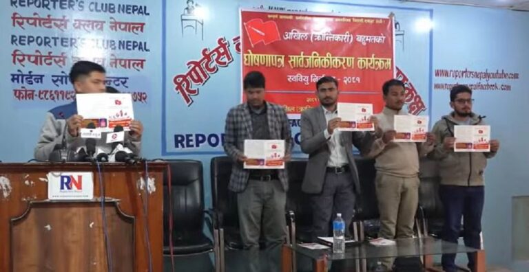 घोषणा पत्र सार्वजनिकी कार्यक्रममा अखिल (क्रान्तिकारी) बहुमतका केन्द्रीय अध्यक्ष वीरेन्द्र साह, सचिव गोविन्द विष्ट, हरि विष्टलगायतको उपस्थिति रहेको थियो ।