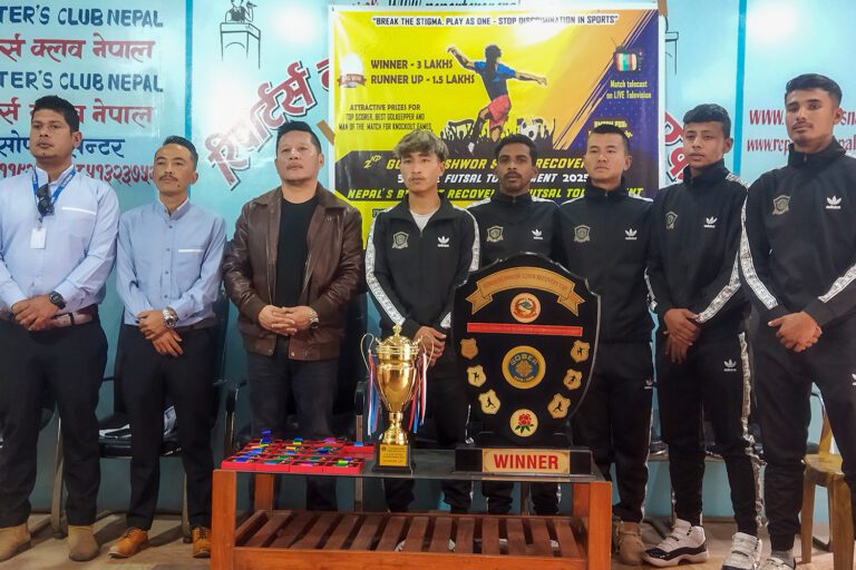 काठमाडौं, ३ चैत । सोभर रिकभरी ट्रिट्मेन्ट एण्ड रिहाविलिटेसन सेन्टरले दोस्रो गोकर्णेश्वर सोभर रिकभरी फुट्सल टुनामेन्ट आयोजना गरेको छ । आज (आइतबार) रिपोर्टर्स क्लबमा पत्रकार सम्मेलन आयोजना गरी आगामी (अप्रिल ३ र ४ तारेख) चैत २१ र २२ गते काठमाडौंको माकलबारीस्थित मनकामना फुट्सलमा टुनामेन्ट आयोजना गरिएको जानकारी गराइएको हो ।